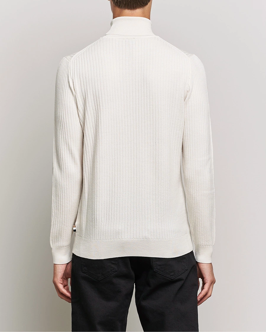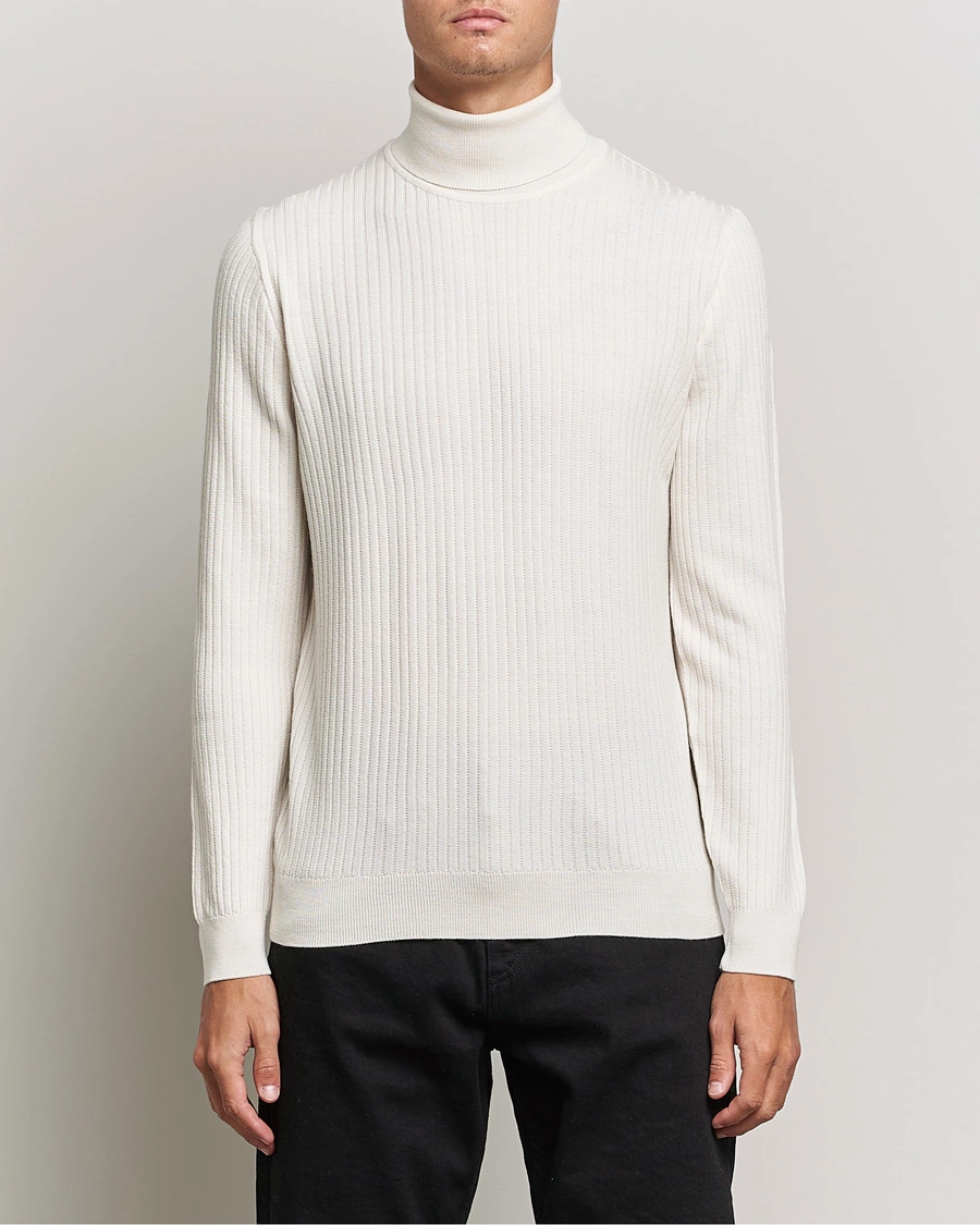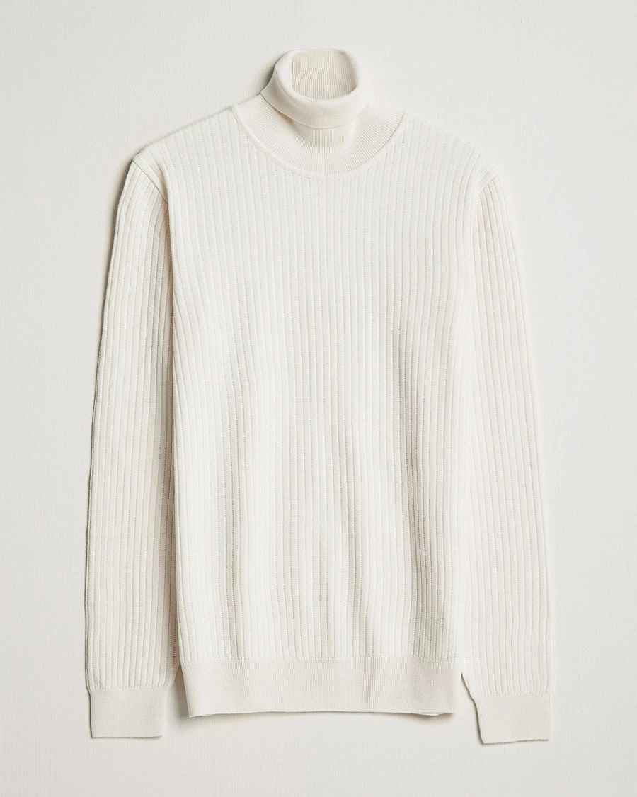 • Ribbestrikket polokrage, vrangbord nederst på ermer og nederst på plagget.